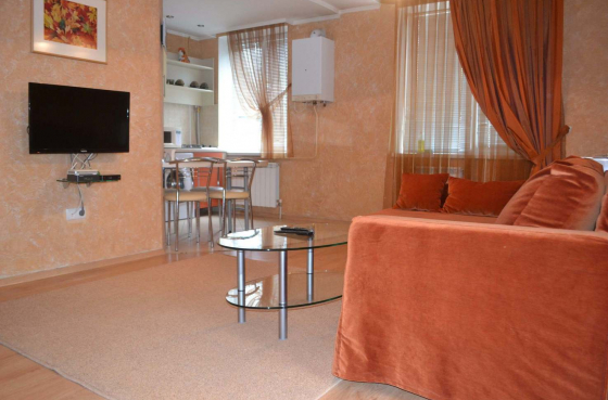 Nu departe de apartament se află cafenele moderne, baruri, restaurante din capitală, centre comerciale cu distracţii pentru toată familia.