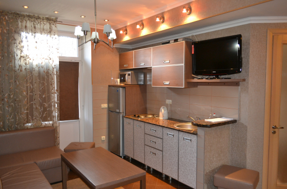 - kitchen: refrigerator, microwave oven, cooker, electric kettle, set of dishes;